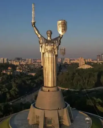 La Madre Ucrania, inaugurada en 1981, la figura en sí mide 62 metros pero contando la base es 102